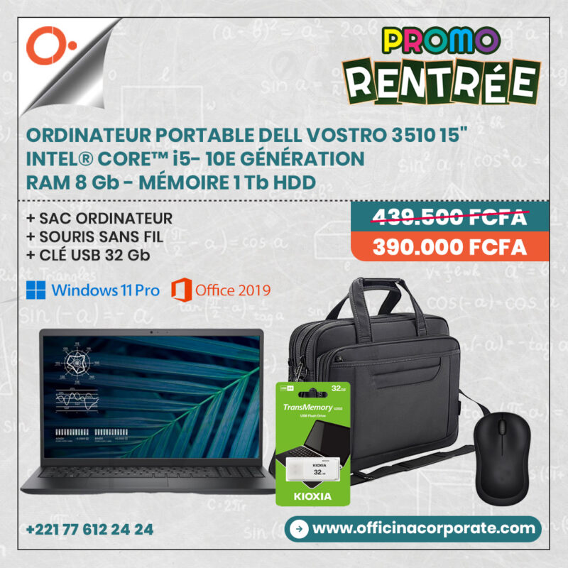 ORDINATEUR PORTABLE DELL VOSTRO 3510 15″ INTEL® CORE™ i5- 10E GÉNÉRATION RAM 8 Gb – MÉMOIRE 1 Tb HDD