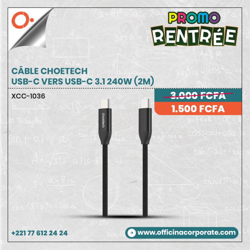 CÂBLE CHOETECH USB-C VERS USB-C 3.1 240W (2m)