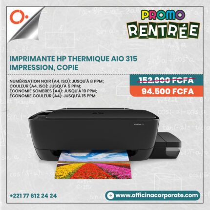 IMPRIMANTE HP THERMIQUE AIO 315 IMPRESSION, COPIE Le prix initial était : 152.900CFA.Le prix actuel est : 94.500CFA.